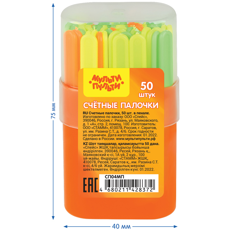 Набор счетных палочек Мульти-Пульти "Чебурашка", 80шт., в евробоксе