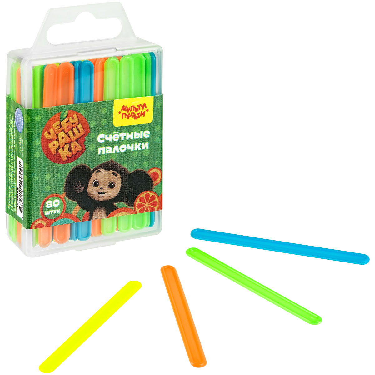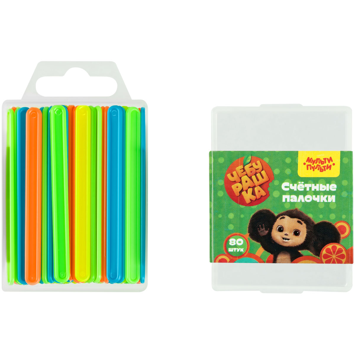 Набор счётных палочек «Мульти-Пульти» серии «Чебурашка» предназначен для обучения счету в игровой форме детей младших классов и дошкольников. Палочки упакованы в пластиковую коробочку с яркой наклейкой с любимым персонажем. Палочки представлены в ярких флюоресцентных цветах: жёлтый, зелёный, оранжевый, розовый. В набор входит 80 штук.<br/>• Материал: полистирол;<br/>• Количество цветов: 4;<br/>• Количество штук: 80.