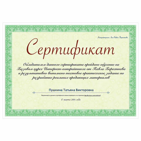 | Тип товара | Сертификат-бумага |