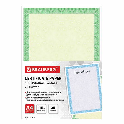 Сертификат-бумага для лазерной печати BRAUBERG предназначена для изготовления сертификатов, грамот, дипломов, памятных и других важных документов. Идеальна для письма масляными, капиллярными и шариковыми ручками.