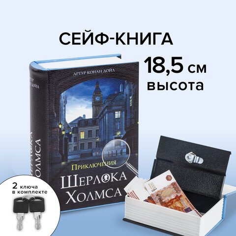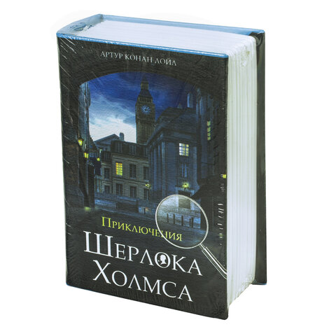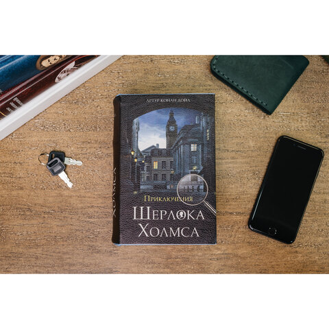 Ящик стилизован под книгу "Приключения Шерлока Холмса". Обложка выполнена из кожзаменителя черного цвета. Книга-сейф — это металлический бокс в виде ложной книги. Предназначен для хранения мелких ценных вещей: документы, медикаменты, печати, мелкая наличность. Оригинальный, удобный бокс, который можно использовать как тайничок: бокс маскируется под книжку, незаметен среди других книг на полке. Главная особенность такой вещи в том, что выглядит она весьма оригинально, благодаря чему нравится многим. Фраза "Книга - лучший подарок" еще никогда не была так актуальна.