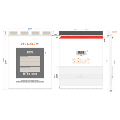 Сейф-пакеты изготовлены из непрозрачного, влагонепроницаемого материала, исключающего возможность просмотра вложений и воздействия окружающей среды. Предназначен для пересылки и транспортировки ценных бумаг, договоров, денег и драгоценных металлов.