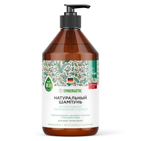 Шампунь 750 мл, SYNERGETIC "Интенсивное увлажнение и блеск", бессульфатный, 701750