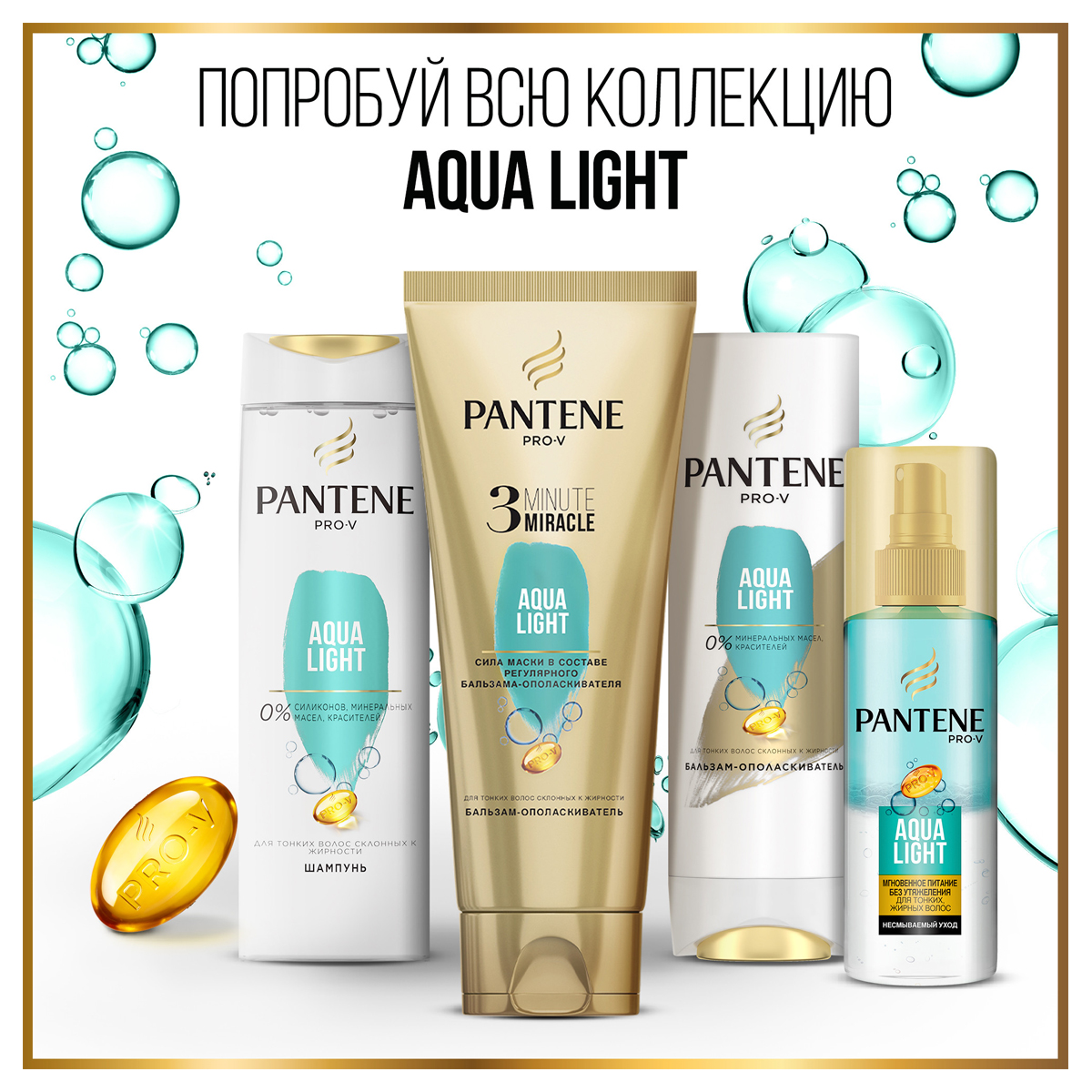 Бальзам-ополаскиватель PANTENE Pro-V (Пантин Про-Ви) Aqua Light идеально подходит для тонких волос, склонных к жирности. Благодаря уникальному комплексу Pro-V и легкому составу без красителей и минеральных масел он увлажняет волосы без утяжеления, сохраняя их свежесть, легкость и подвижность. Подходит для ежедневного применения и для окрашенных волос. Для достижения максимального эффекта используйте в сочетании с шампунем и спреем для волос из коллекции Aqua Light. Легендарный бренд PANTENE Pro-V заботится о здоровье и красоте волос женщин по всему миру уже более 75 лет. Сегодня Pantene — это богатый научный опыт ведущих экспертов и самые эффективные ингредиенты и питательные вещества, протестированные и одобренные Швейцарским Институтом Витаминов.