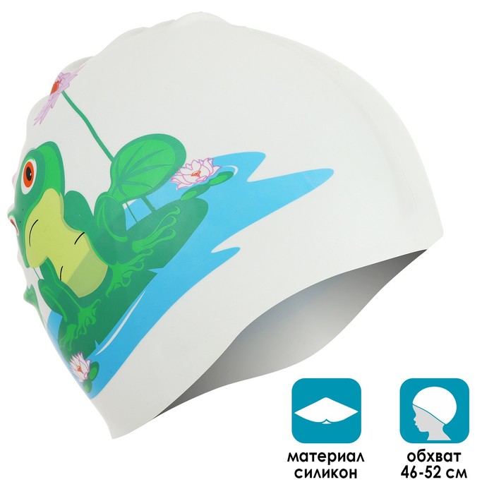 Шапочка для плавания детская ONLITOP «Лягушонок на кувшинке», силиконовая, обхват 46-52 см