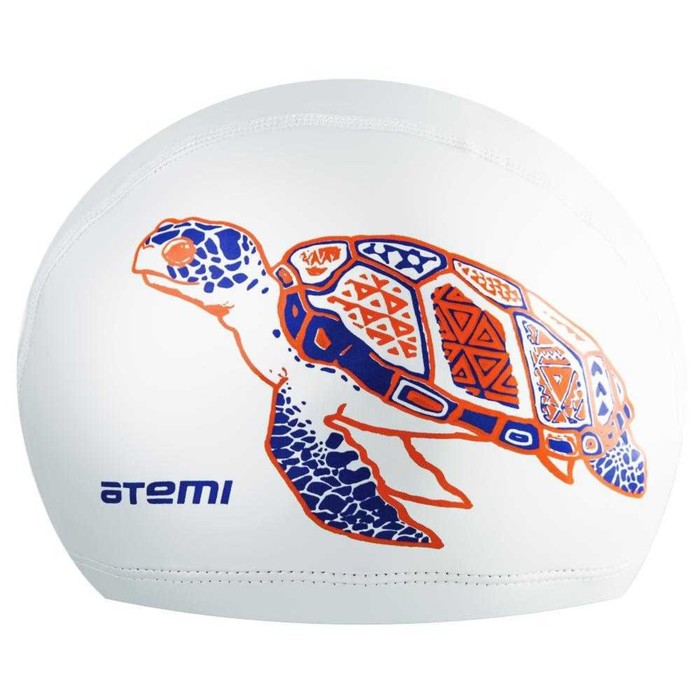 Шапочка для плавания Atemi PU 305, тканевая с ПУ покрытием, белый, принт