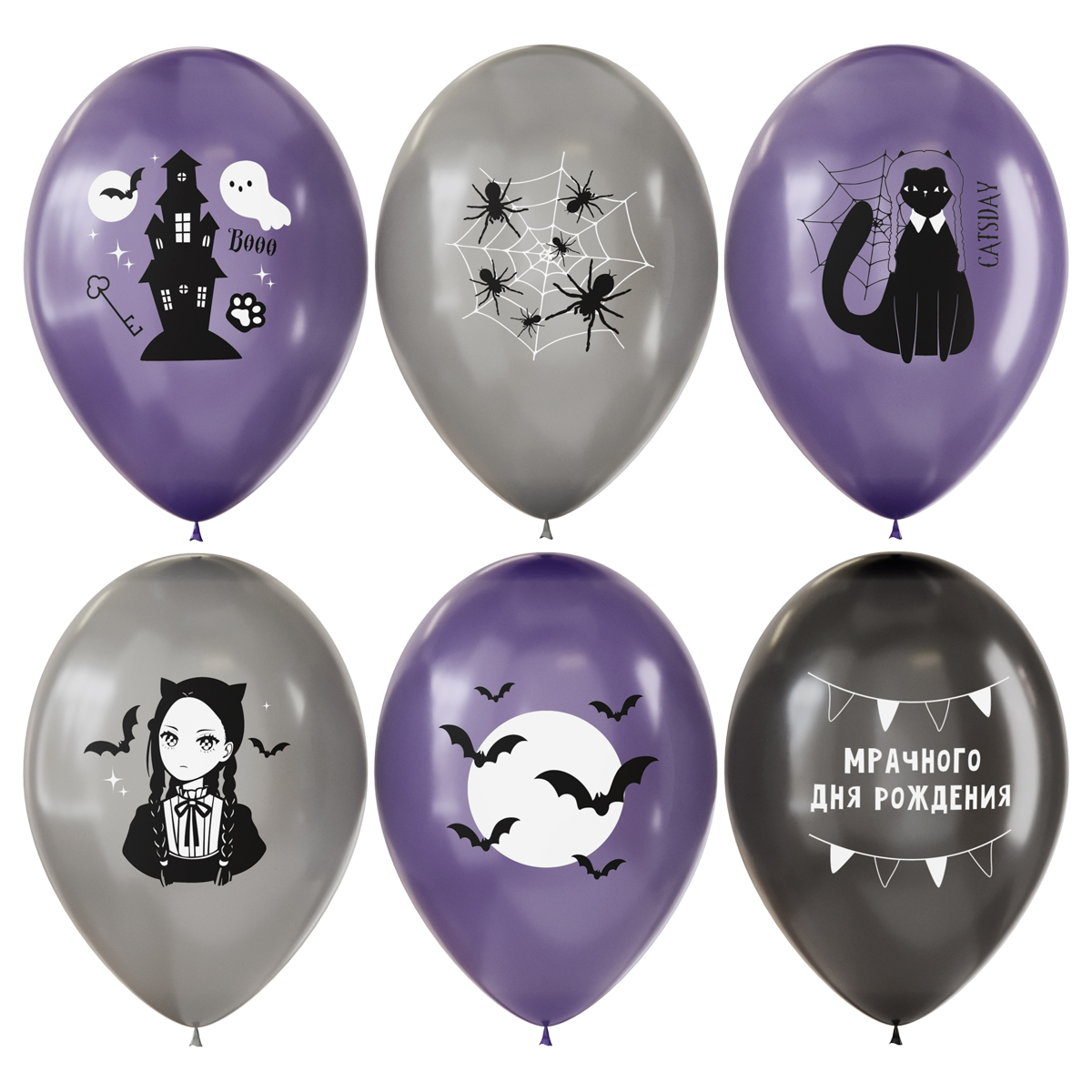 Воздушные шары, 12шт., М12/30см, MESHU "Catsday", пастель, ассорти