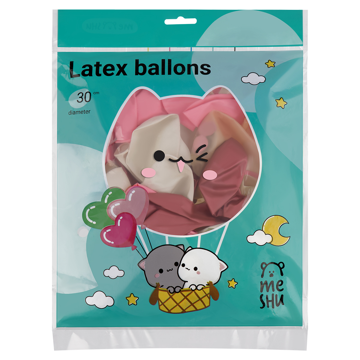 Воздушные шары, 12шт., М12/30см, MESHU "Catsday", пастель, ассорти