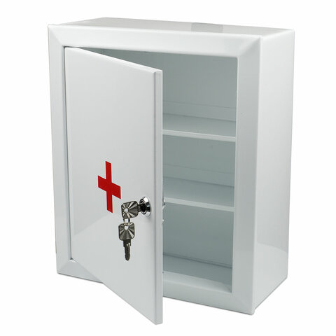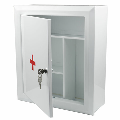 Шкафчик-аптечка металлический, навесной, внутренние перегородки, ключевой замок, 400x360x140 мм