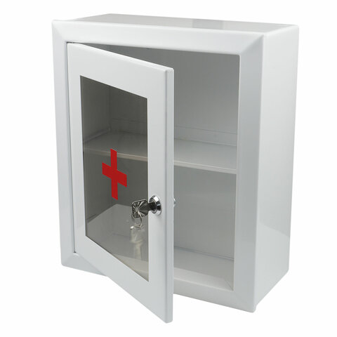 Шкафчик-аптечка металлический, навесной, 1 полка, ключевой замок, стекло, 330x280x140 мм