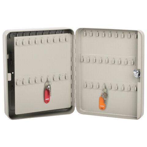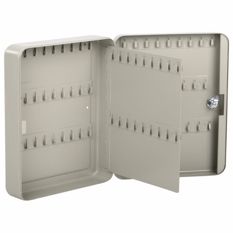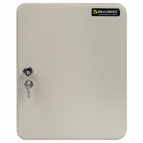 Шкафчик (Ключница) на 48 ключей BRAUBERG, 250х180х80 мм, с замком, + 48 брелоков, серый, 290338