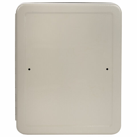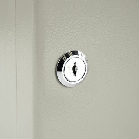 Изготовлен из прочной стали толщиной 0,8 мм и оснащен надёжным замком. Вмещает 90 ключей. Для размещения каждого ключа в шкафчике предусмотрен брелок с ярлычком. Размер - 300х240х80 мм.