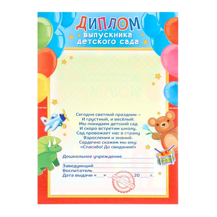 Диплом "Первокласснику!" канцелярия, бумага, А4