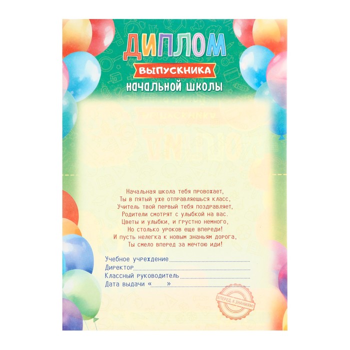 Диплом "Первокласснику!" канцелярия, бумага, А4