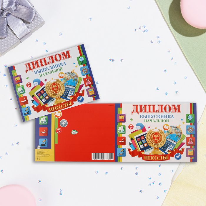 Диплом "Выпускник начальной школы!" школьные предметы, 44,5 х 16,5 см