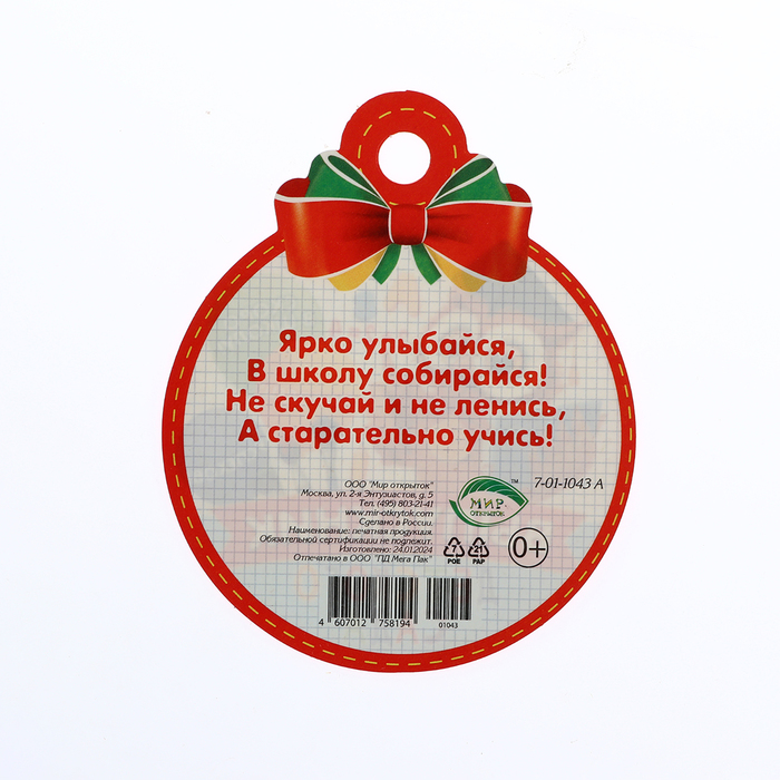 Свидетельство "Первокласснику!" канцелярия, бумага, А4