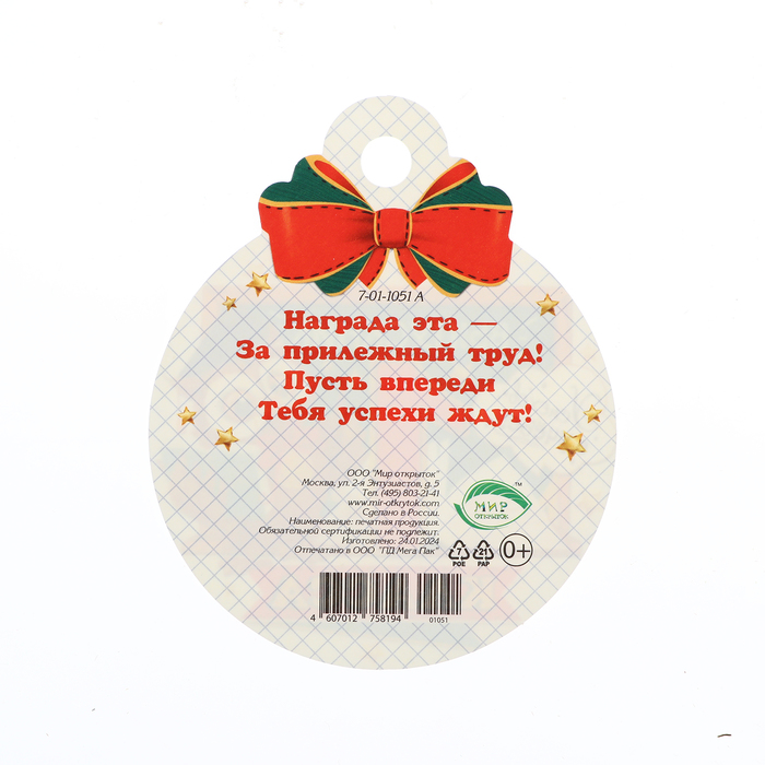 Свидетельство "Первокласснику!" канцелярия, бумага, А4