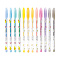 Набор гелевых ручек с чернилами металлик, 12 цветов, пищущий узел — 1 мм, упакованы в ПВХ чехол с европодвесом размерами 17,5х12х1,5 мм. Длина ручки с колпачком 149 мм, без колпачка 140 мм, длина стержня 130 мм. Диаметр корпуса 8 мм. Длина письма 1 ручки 250 - 300 м. Перед использованием рекомендовано встряхнуть ручку вниз пишущим узлом.
