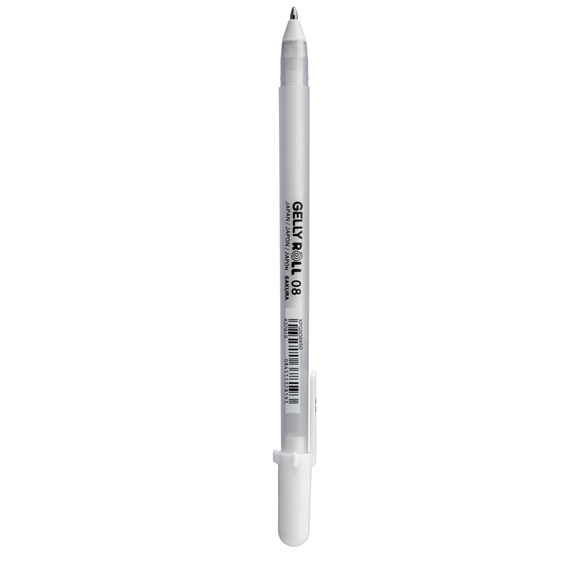 Ручка гелевая белая Sakura Gelly Roll 08 (пишущий узел 0,4мм) - Широкая область применения для хобби и художников: леттеринг, создание поздравительных открыток и приглашений, скрапбукинг и другие виды хобби, создание иллюстраций и комиксов, также используется при работе в смешанной технике. - Яркие кроющие чернила - Пишущий узел 0,8мм, толщина линии 0,4мм - Не предназначена для косметического использования