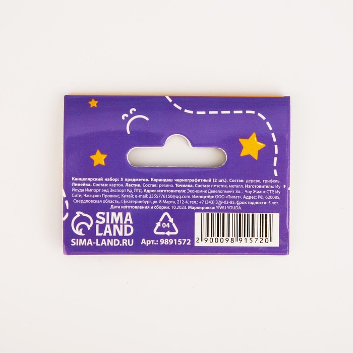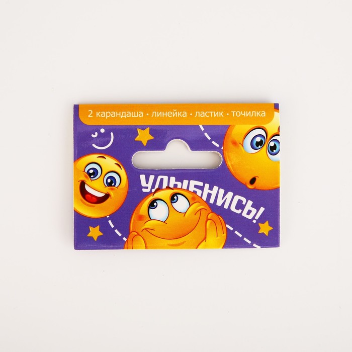 Набор канцелярский Calligrata 9 предметов, 4 чернографитных карандаша, точилка, ластик, линейка, ручка, насадка-тренажер, жёлтый