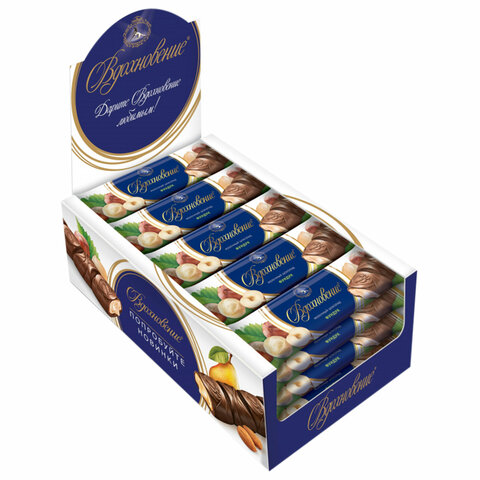 Шоколадный батончик БАБАЕВСКИЙ "Вдохновение" - это гармоничное сочетание нежнейшего молочного шоколада с тающей кремовой начинкой и кусочками обжаренного фундука.