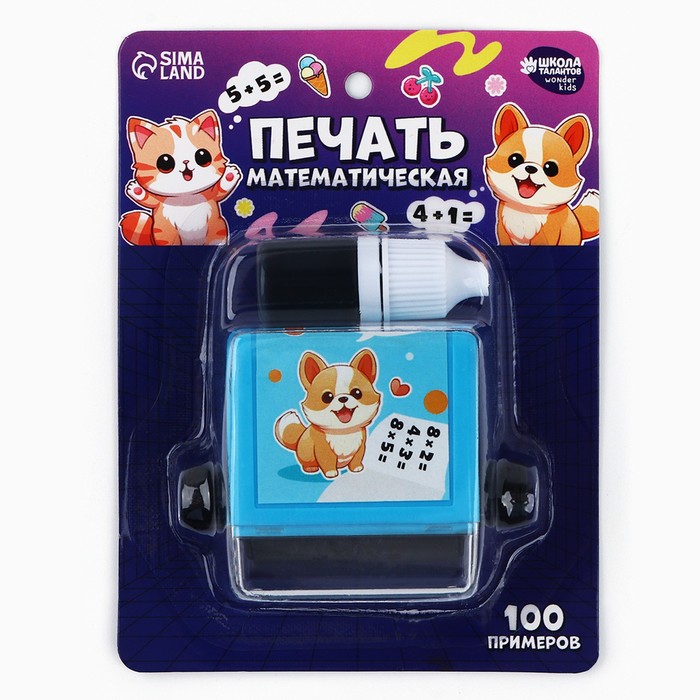 Математическая печать «Радостный котик», вычитание, 100 примеров