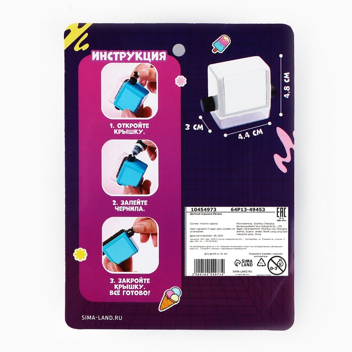 Обучающая детская печать «Часики», 3.9 х 7.8 см, МИКС