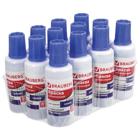 Штемпельная краска BRAUBERG предназначена для заправки штемпельных подушек, используемых для всех видов ручных и автоматических оснасток печатей, штампов, нумераторов и датеров.