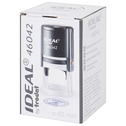 Оснастка TRODAT IDEAL 46042 для круглой печати, с крышкой, автоматическая, материал корпуса пластик. Неизменное Австрийское качество изготовления пластикового корпуса, механизмов и материалов оснастки, обеспечивает возможность бесконечно длительного использование оснастки. Автоматическое окрашивание клише, позволяет сделать четкий хорошо прокрашенный оттиск. Легкая и чистая замена штемпельной подушки TRODAT арт. 6/46042. Защитная крышка позволяет блокировать корпус в сложенном компактном виде, обеспечивает сохранность клише от повреждений и чистую транспортировку. Используется для основной и дополнительных печатей организации с большим количеством текста, и большим объемом печати. Текстовая плата круглой формы под изготовление клише. Клише заказывается отдельно.