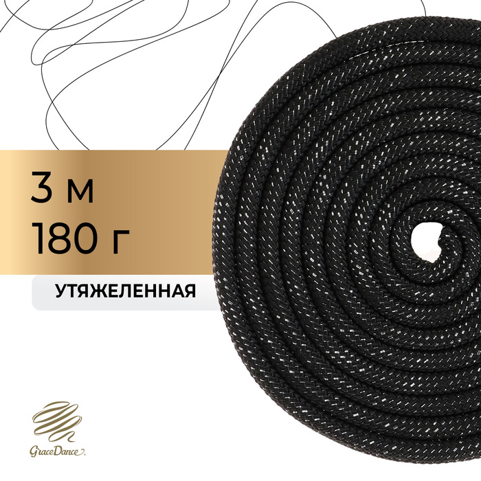 Скакалка для художественной гимнастики утяжелённая Grace Dance, 3 м, цвет чёрный