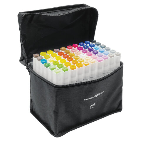 Маркеры для скетчинга двусторонние, НАБОР 60 шт, текстильный чехол, WBZ, 152574