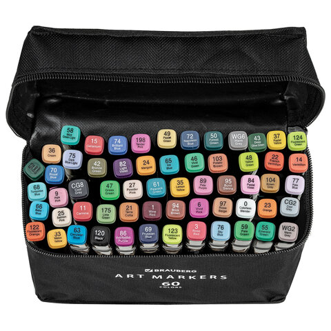 Маркеры для скетчинга двусторонние, НАБОР 60 шт, текстильный чехол, WBZ, 152574