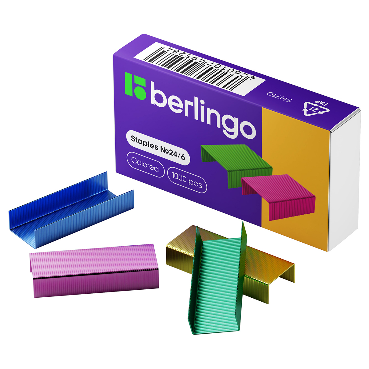 Канцелярские скобы Berlingo № 24/6 изготовлены из стальной проволоки с цветным покрытием, обеспечивают надёжное сшивание до 30 листов. В упаковке 4 цвета скоб: розовый, синий, зелёный и жёлтый. Поставляются в блистере, по 3000 шт.