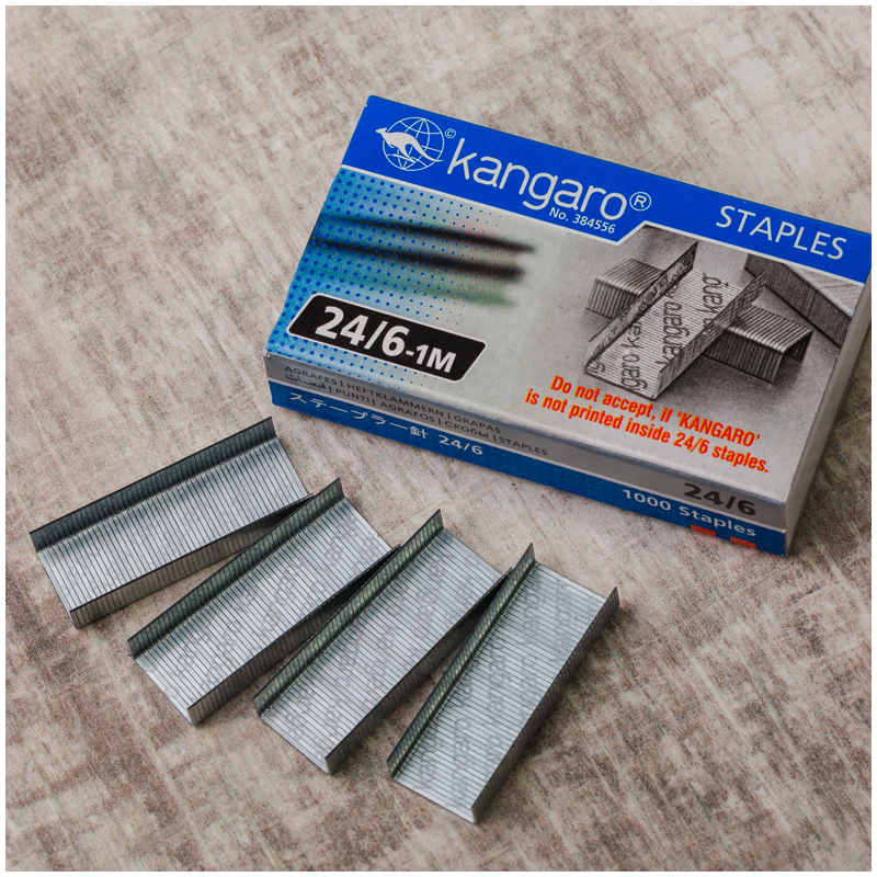 Скобы сверхпрочные Kangaro №24/6, сделанные из японской стали концерна Fuji Heavy Industries, обеспечат высочайшую прочность и надежность скрепления, бесперебойную подачу скобы. Не крошатся и не разбиваются при падении. Специальная заточка скобы и специальный клей.
