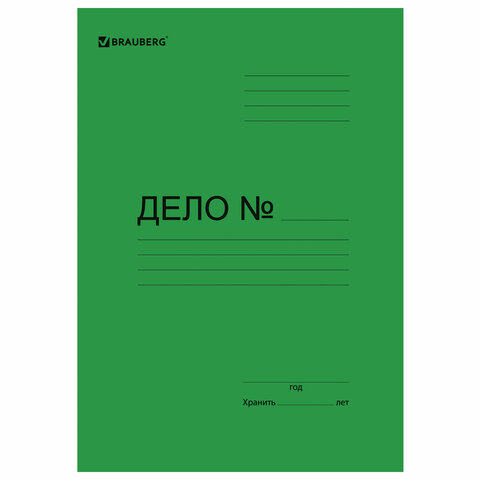 Подходит для документов формата А4 и меньше. Изготовлен из зеленого мелованного картона плотностью 360 г/м2. Оснащен металлическим механизмом сшивания. Вмещает до 200 листов стандартной плотности. Имеет надпись "Дело №" на обложке. Поставляется в гофрокоробе.