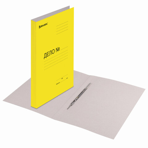 Подходит для документов формата А4 и меньше. Изготовлен из желтого мелованного картона плотностью 360 г/м2. Оснащен металлическим механизмом сшивания. Вмещает до 200 листов стандартной плотности. Имеет надпись "Дело №" на обложке. Поставляется в гофрокоробе.
