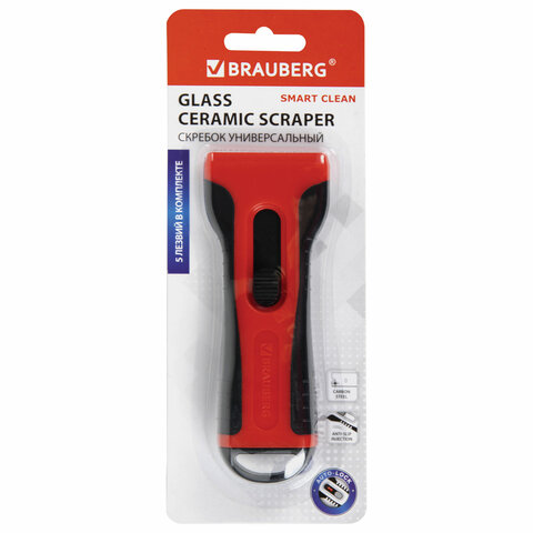 Скребок для любых поверхностей (стеклокерамика, стекло, плитка) BRAUBERG "CLEAN", 5 лезвий, 606761
