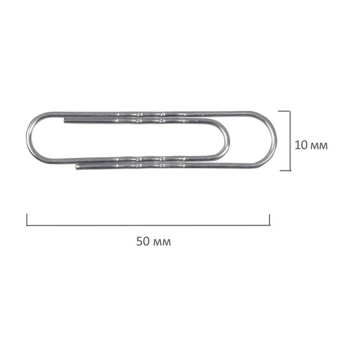 Большие гофрированные скрепки изготовлены из стали, имеют классическую овальную форму и цинковое покрытие. Длина скрепки составляет 50 мм. Не окисляются и не повреждают документы. 50 штук в картонной коробке.