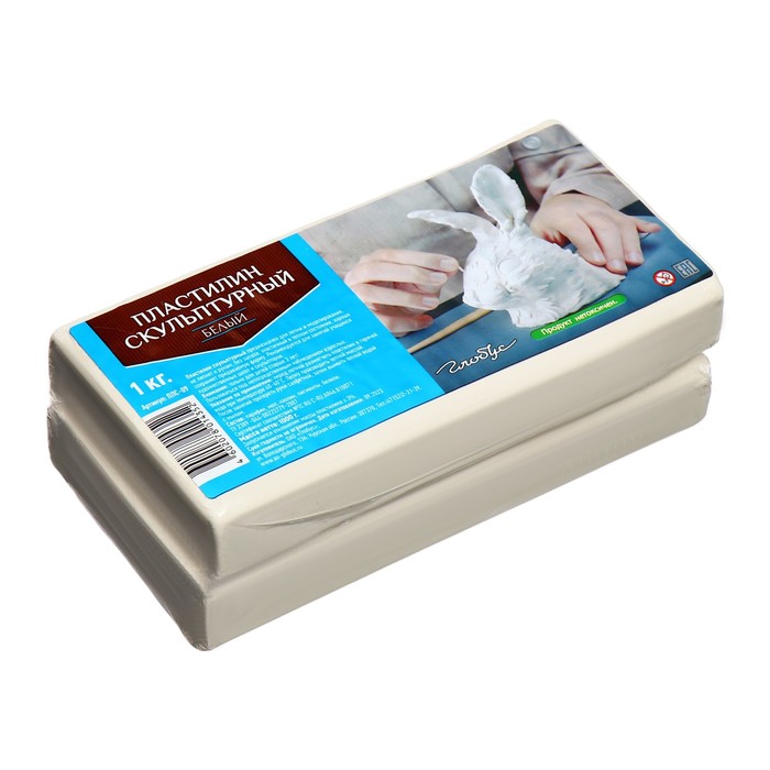 Пластилин скульптурный белый, твёрдый, 1000 г, "Гамма"