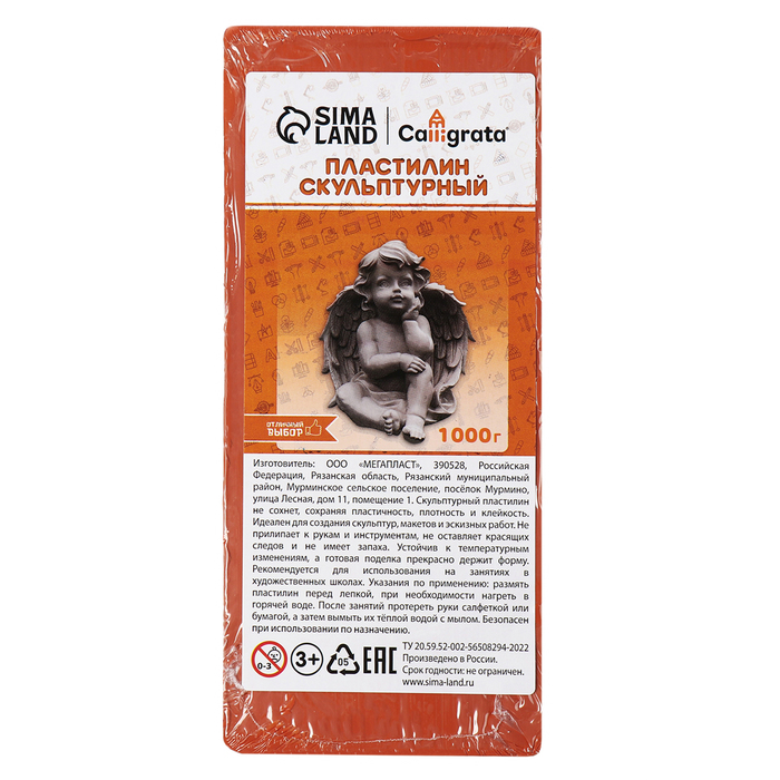 Пластилин скульптурный 1000г Calligrata мягкий, терракотовый