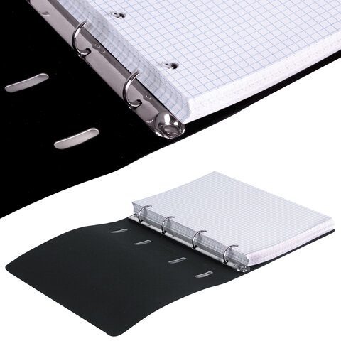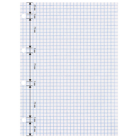 Подходит для всех тетрадей на кольцах формата А4. Внутренний блок содержит 80 листов белой, офсетной бумаги плотностью 60 г/м2. Линовка - в клетку без полей. Упакован в термопленку.