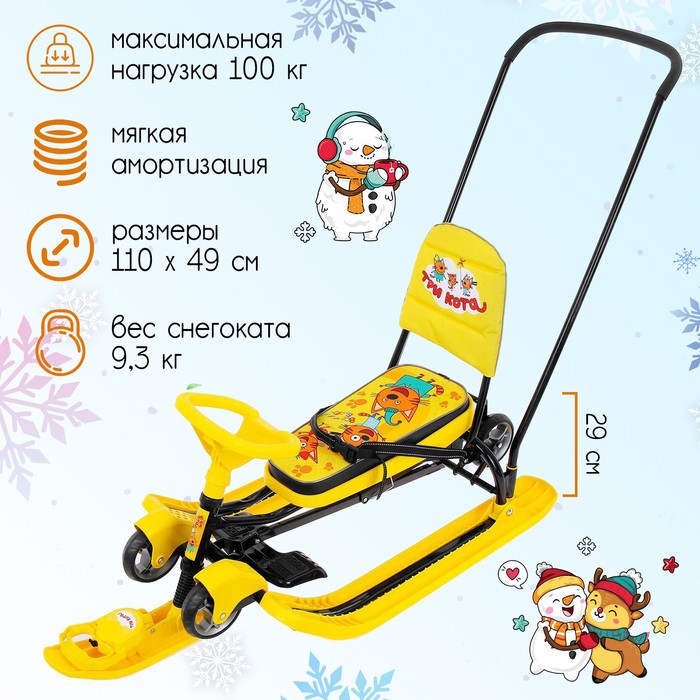 Снегокат с колёсами «Тимка спорт 6 Три кота», ТС6/ТК, с родительской ручкой, со спинкой и ремнём безопасности, цвет жёлтый/чёрный