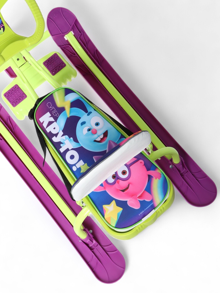 Снегокат «Пиксели», с родительской ручкой, со спинкой, зелёный, ТС6-СЛ/ПК Snow Cat