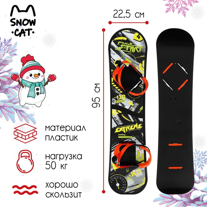 Сноуборд детский Snow Cat с облегчёнными креплениями, 95 см, цвет разноцветный