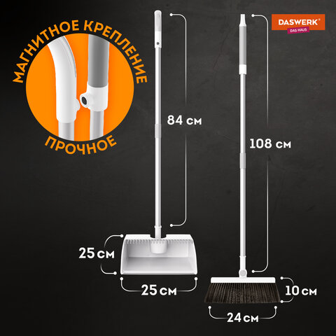 Совок и щётка на длинных рукоятках DASWERK предназначены для комфортной и эффективной уборки мусора в помещении. Компактные размеры, магнитное крепление и возможность вертикального хранения позволят разместить их в любом удобном месте Вашего дома.