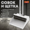Совок для мусора + щетка на длинных рукоятках 77см (металл), бело-серый, разборный, LAIMA, 608947