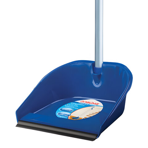 Совок для мусора + щетка, пластик, резиновая кромка, алюминиевые рукоятки 70 см, синий, LAIMA, 601472
