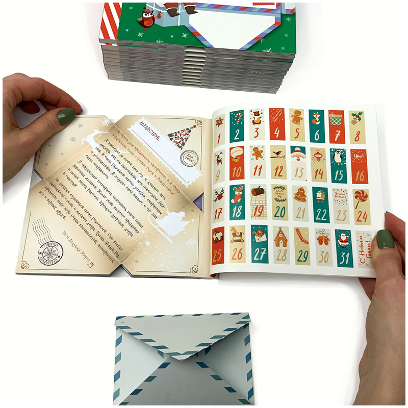 Совсем скоро главный праздник – Новый год! И самое интересное – это подготовка к празднику, приготовления, зимнее настроение и ожидание волшебства! Для таких особенных дней и были придуманы когда-то адвенты. Адвент «Письмо от Деда Мороза» с заданиями на каждый день ожидания праздника, начиная с 1-го декабря и до самого Нового года, станет отличным помощником для любой мамы. Каждая страничка – это письмо от Деда Мороза с интересными зимними заданиями. Все, что нужно, это оторвать страничку по перфорации, вписать имя ребенка, сложить по линии сгиба и заклеить наклейкой. Вы можете каждое утро подкладывать письмо под подушку, под елку или класть на окошко. При желании вы можете поощрять ребенка за выполненное задание небольшими сюрпризами или сладостями. Дед Мороз подготовил разные задания: творческие, познавательные, развлекательные, а еще семейные. Ведь самое интересное – проводить время вместе. А самое последнее 31-е письмо – самое настоящее поздравление от самого Деда Мороза! Увлекательного и волшебного ожидания Нового года! В комплекте: 31 письмо с заданиями на каждый день декабря и 31 наклейка.