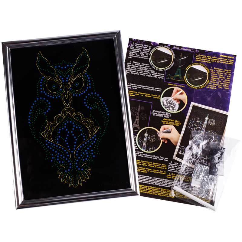 Сделать такую картину очень просто и под силу даже ребенку! На заготовку нанесен липкий слой, который позволит без КЛЕЯ закрепить стразы, а цветовая схема, делает работу очень простой и интуитивно понятной! Специальный карандаш-аппликатор для захвата и расстановки страз, поможет с легкостью расставить «алмазы» по своим местам.