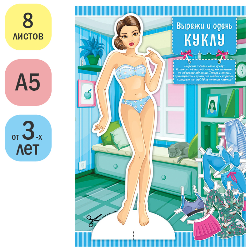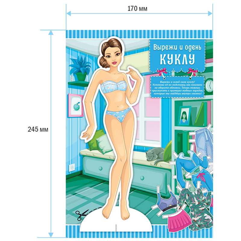 Вырезалка ArtSpace «Модные девчонки. Топ-модель» предназначена для девочек старше трёх лет. Притягивающая обложка в синих тонах сделана из картона, имеет формат А5. Внутренний блок состоит из 8 листов (16стр.) офсетной бумаги плотностью 100 г/м2.